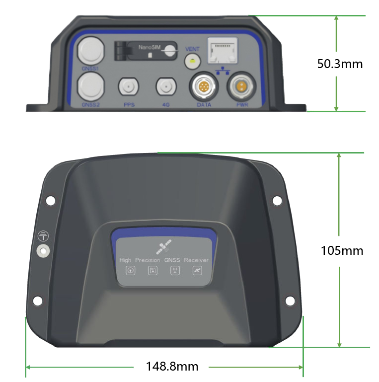 | 接口 | PWR1:电源接口 DATA*1、PPS*1 SIM1:Nano SIM卡接口 Ethernet1 GNSS1/GNSS2:TNC接口 4G*1:4G天线接口 |